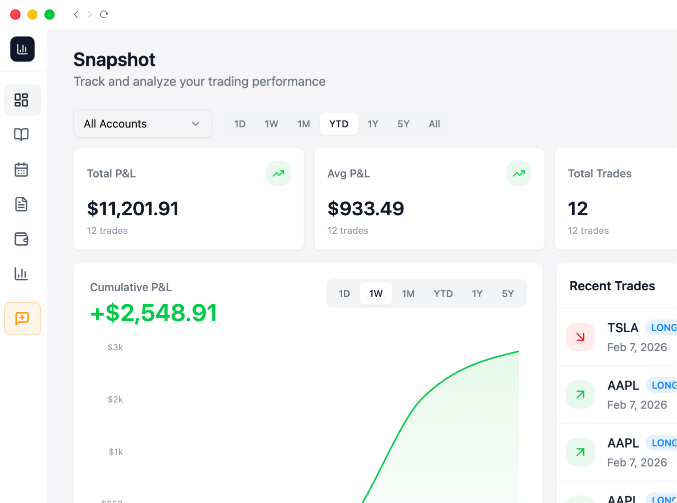 Folyo is a structured trading journal designed to help traders analyze decisions, track performance, and improve consistency — without noise, hype, or guesswork.