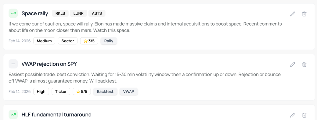 Capture your thesis before the trade and compare it to what actually happened. Over time, this builds a database of your thinking patterns.