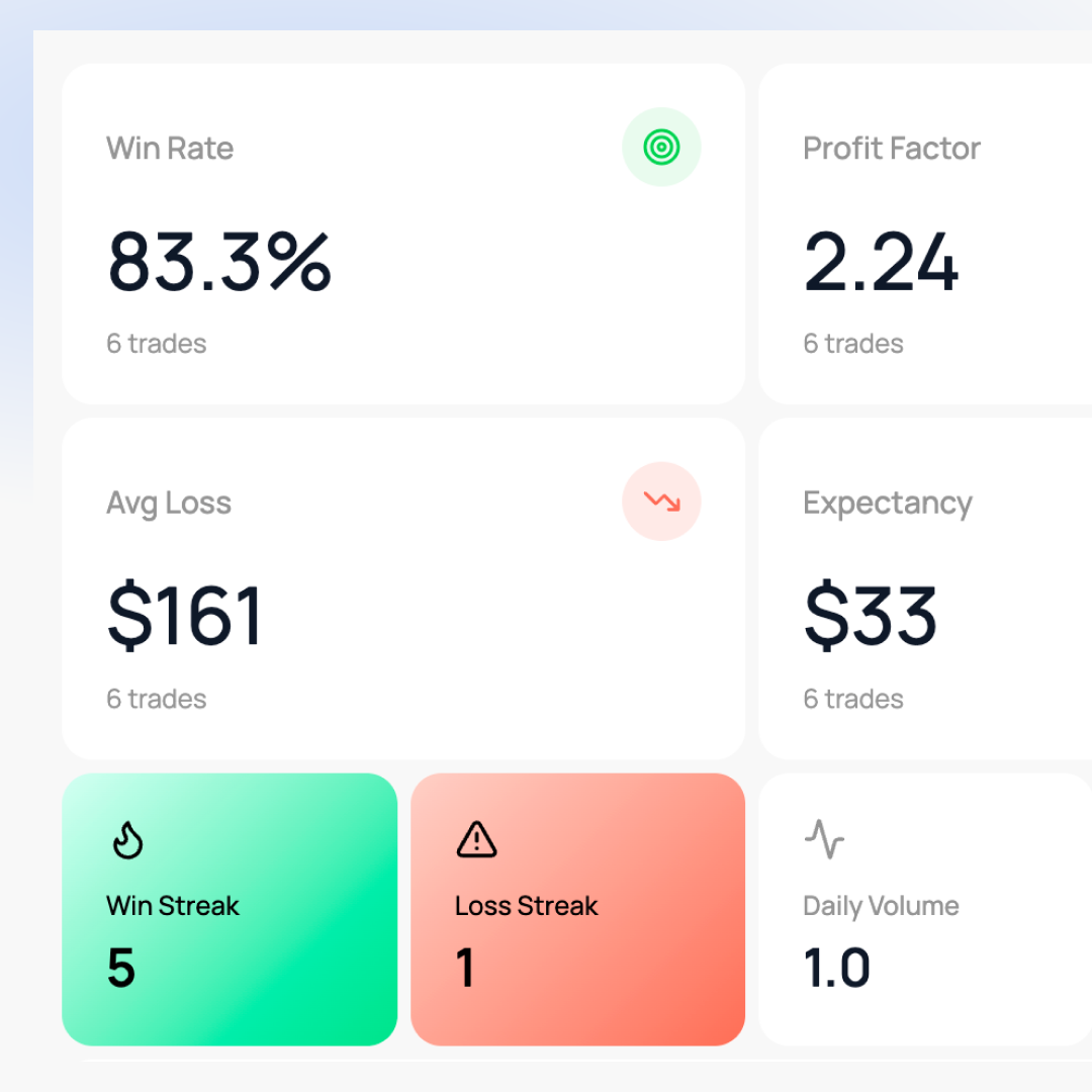 Get AI-driven analysis based on your trades, notes, emotions, and rule tracking. Identify patterns, strengths, and recurring mistakes over time.